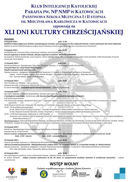 Dni Kultury Chrześcijańskiej w Katowicach. Program 2025 r. 6-26 listopada 2025 pdf